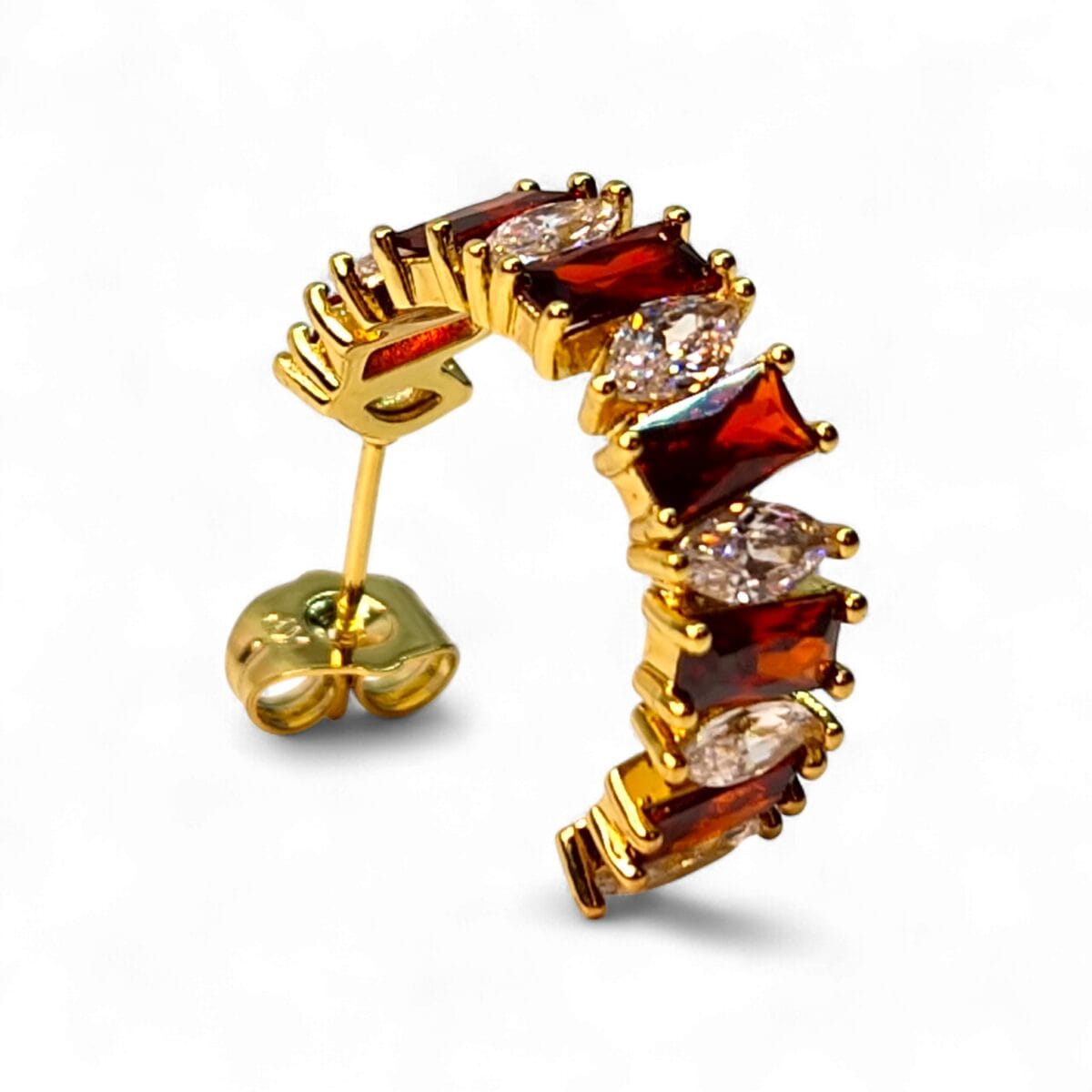 Femeia modernă știe că detaliile fac diferența. Cerceii placați cu aur Andreea sunt expresia perfectă a echilibrului dintre culoare, eleganță și energie. Cu nuanțe calde de roșu rubiniu și accente luminoase de zirconiu alb, acești cercei aduc un strop de pasiune în orice ținută.